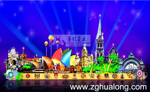 Steel frame structure, silk frame modeling,some part with LED hooking,3D modeling,chromatic silk and satin seperated pastin,in magnificent and colorful appearence.