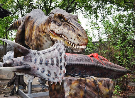 Large Animatronic Tyrannosaurus Rex Eating Triceratops